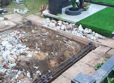 Сначала мы разобрали всё, что было на могиле: демонтировали памятник, сняли гранитный цоколь, разломали бетон.